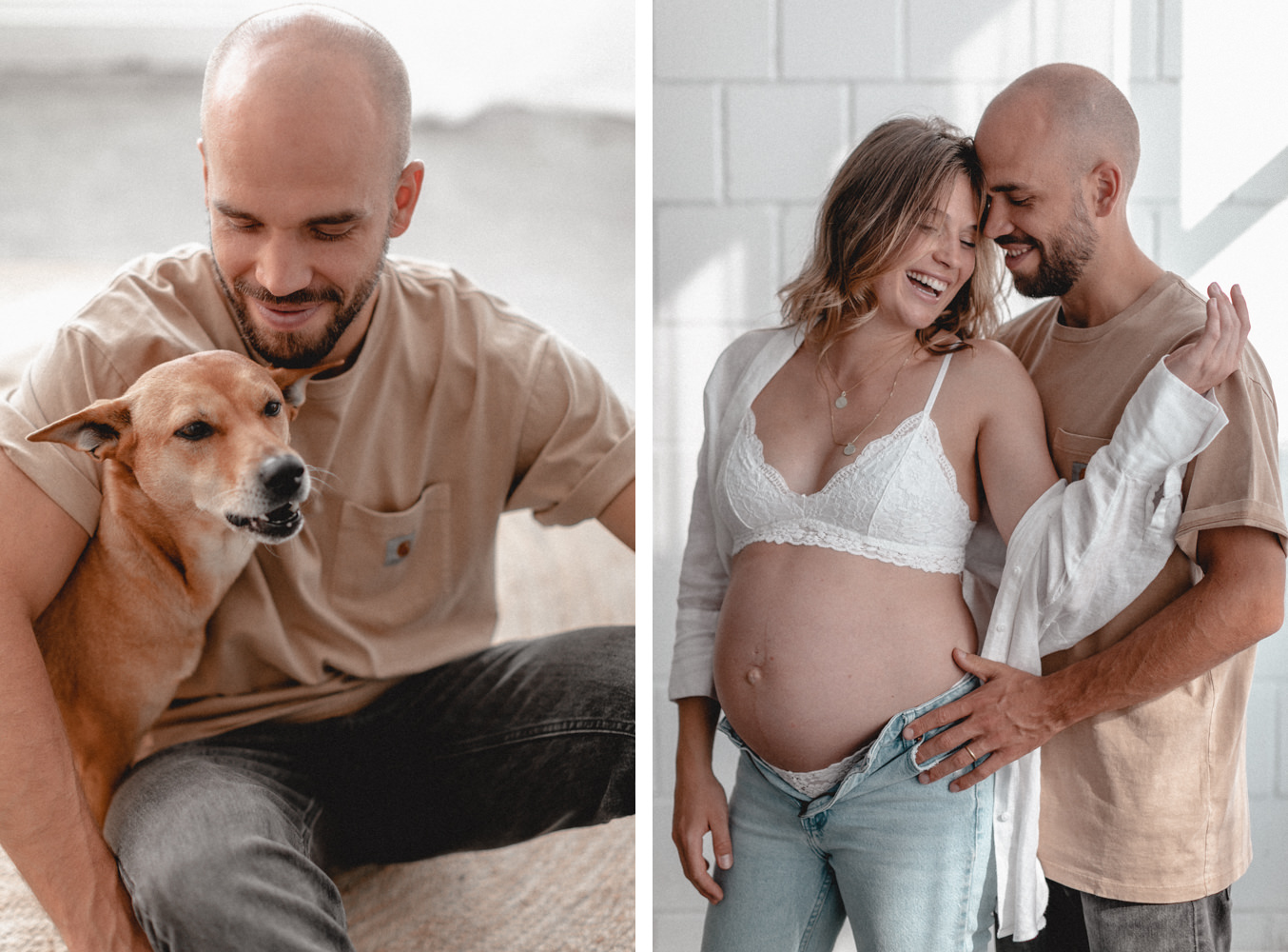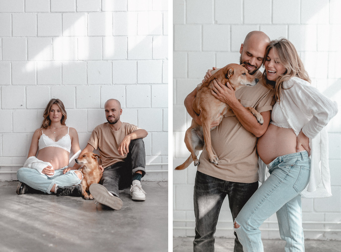 Bei diesem Schwangerschaftsshooting wollten wir uns etwas abseits der „typischen“ Babybauchbilder in unterschiedlichen Styles ausprobieren. Die zauberhafte Aline, ihr Mann Aaron und ihre Hündin Peanut sind dazu zu uns nach Düsseldorf gekommen. Als Location haben wir uns das Sunny Loft ausgesucht, da uns natürlich es Licht wichtig war und man viele unterschiedliche Möglichkeiten hatte. Meine talentierte Freundin und Kollegin, Maria Overath, hat dabei nicht nur tatkräftig bei der Planung mitgewirkt, sondern auch für das atemberaubende Hair & Makeup unsere schönen Aline gesorgt. Unsere Bilder findet ihr auch auf dem wundervolle Blog Mummyandmini, schaut doch mal vorbei uns lasst euch inspirieren.