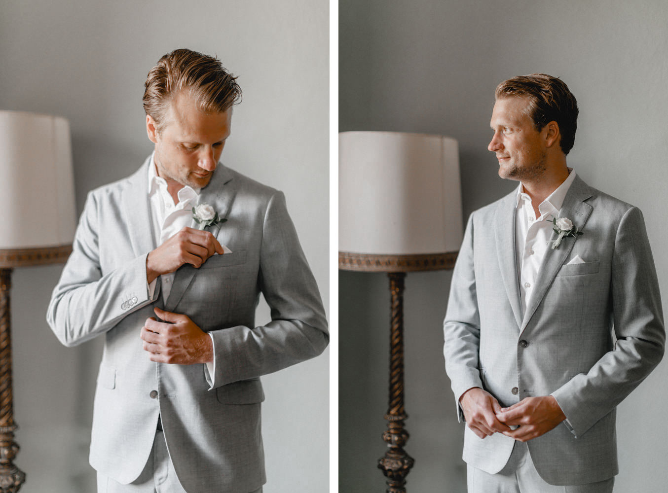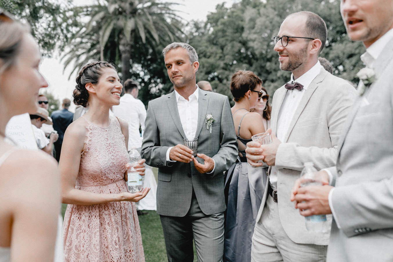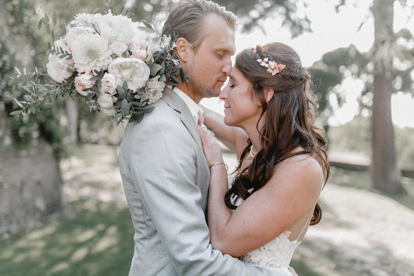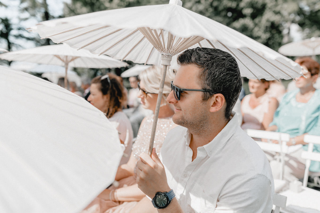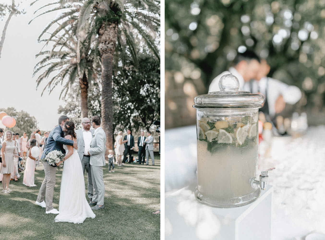 Am Hochzeitstag konnte ich kaum erwarten als Hochzeitsfotograf durchzustarten und noch mehr Liebe und Momente in der Toskana einzufangen. Die Location, das La Pescaia Resort, ist ein traumhafte Hochzeitslocation in der Toskana. Am Pool des Pescaia Resorts gab es vor der Trauung einen Empfang mit erfrischenden Getränken für die Gäste. Katrin von Sagt Ja, die liebe Hochzeitsplanerin der Beiden, verteilte sogar Papierschirme um etwas Schatten zu spenden. Somit konnten die Gäste die Zeremonie in der Mittagssonne entspannt genießen. Nach der emotionalen Trauung und den unglaublich schönen Eheversprechen, die sie sich sagten, ging es für den Empfang zurück zum Poolbereich. Dort konnten wir zwischen den wilden Jasminblüten (es roch so gut!) auch erste Brautpaarbilder fotografieren.